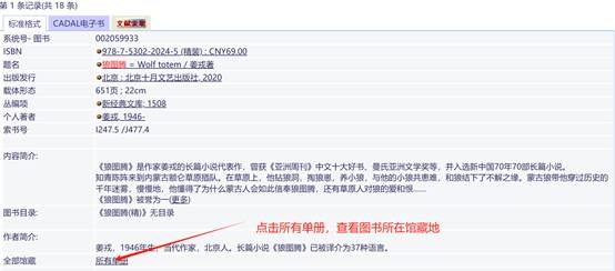 点击“所有单册”,可预约图书,查看图书出借情况和所在馆藏地。