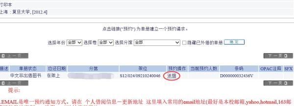 2)在打开的单册信息中,点击预约操作下的“详细”