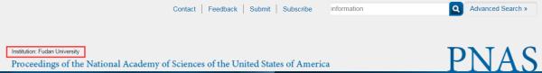 答:在复旦大学的IP范围内访问PNAS,检索结果页面左上方会出现如下所示的标识 “Institution: Fudan University”,如下图: