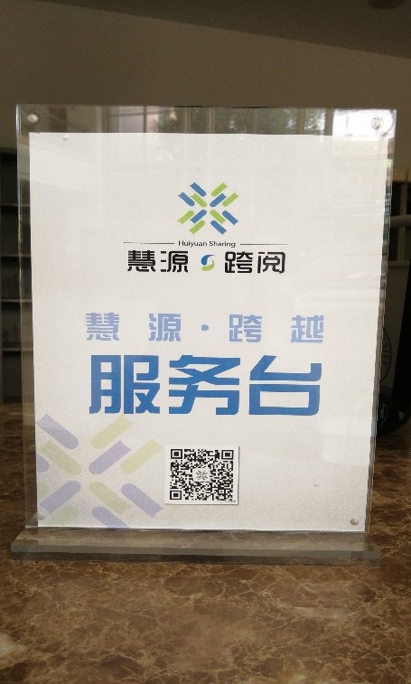 在联盟馆借书时,请在借阅服务台找到“慧源跨阅”醒目标识: