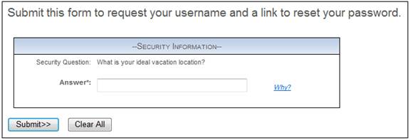 第二步:必须回答安全问题(Security Question),注意:各人注册时选择的安全问题有所不同,下图仅供参考;安全问题的答案需区分大小写,安全问题及其答案均需严格遵循您注册账户时的设置,方能被识别。