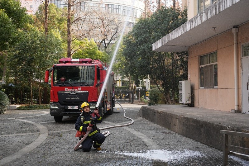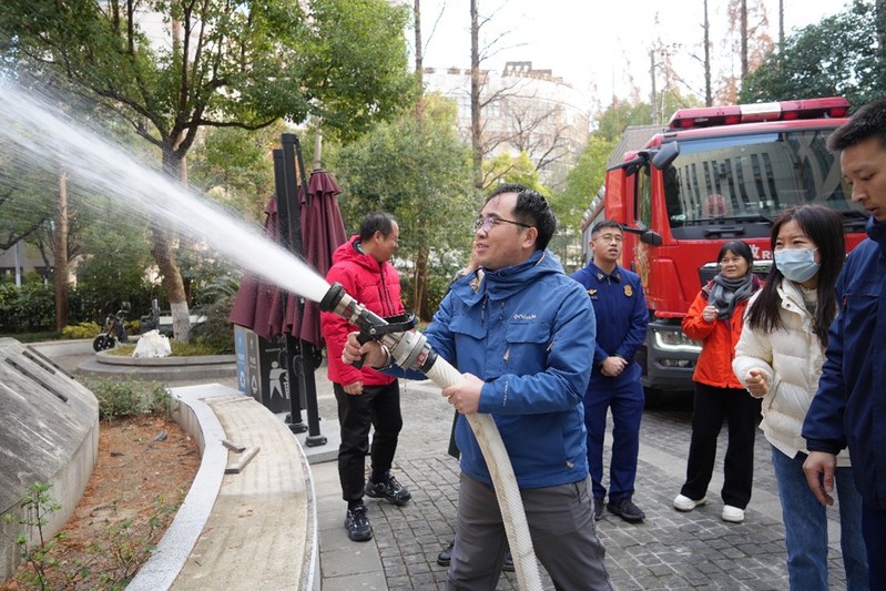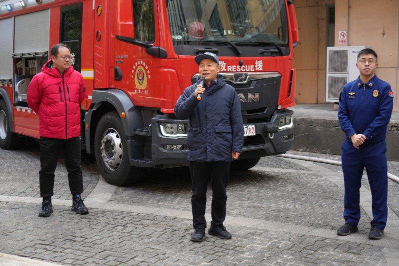 消防演习结束后,杨浦区国定消防救援站消防员就消防安全知识进行了讲解,遇到小火果断扑救或迅速撤离,遇到大火固守待援,不要硬闯。随后还针对消防器材进行了现场演示和讲解。