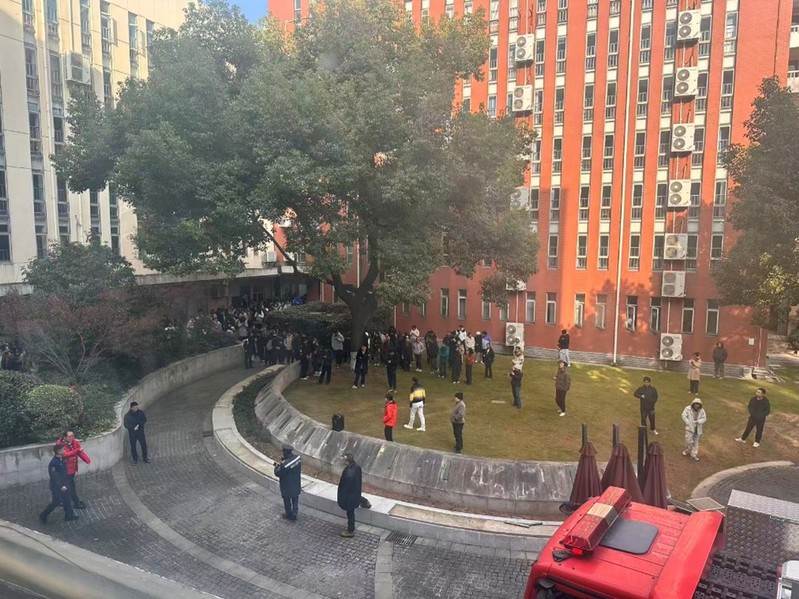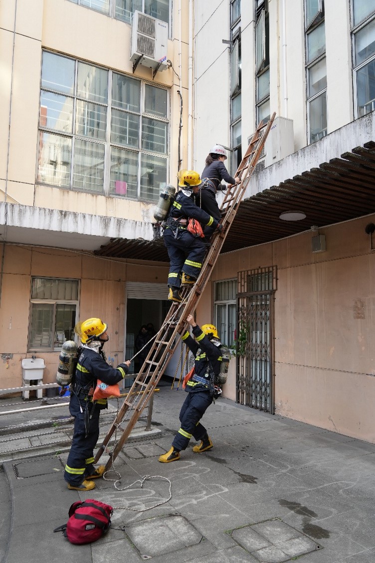 为响应学校消防安全宣传教育活动,提高图书馆应急消防疏散能力,增强广大师生员工消防安全意识和应对突发事件避险自救的能力,图书馆联合杨浦区国定消防救援站以及校保卫处、校医院,于2025年12月25日上午9点,在文科图书馆组织开展了一次实战消防演习,演习结束后进行消防器材使用培训及实操。
