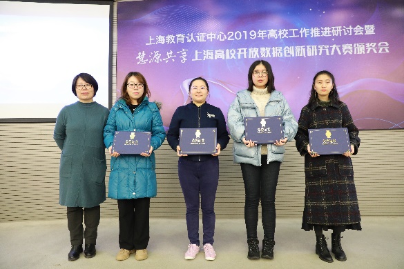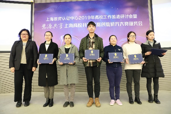 2019年12月25日,“慧源共享”上海高校开放数据创新研究大赛在上海开放大学国际会议中心举行颁奖仪式。该赛是在上海市教委、市经信委指导下,由复旦大学、市教委信息中心、市电化教育馆联合部分上海市高校,面向上海市高校师生,为推动和促进上海市高校间数据资源的开放共享,鼓励上海市高校师生基于开放数据资源进行创新应用与研究,培养和提升沪上大学生的数据素养与数据能力而举办的系列活动。上海市教委李永智副主任,市经信委信息化推进处裘薇处长,上海市教委信息中心王明政主任、朱宇红总工,市电化教育馆张治馆长,复旦大学图书馆张计龙副馆长、许平副书记,以及上海地区近50家高校信息中心和图书馆相关负责人,大赛联合组织单位代表和获奖代表共140余人参加会议。市教委信息中心王明政主任主持颁奖活动。