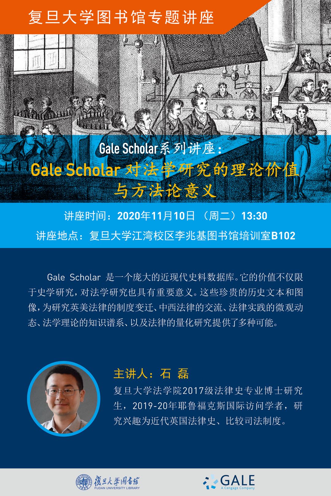 讲座内容:Gale Scholar是一个庞大的近现代史料数据库。它的价值不仅限于史学研究,对法学研究也具有重要意义。这些珍贵的历史文本和图像,为研究英美法律的制度变迁、中西法律的交流、法律实践的微观动态、法学理论的知识谱系、以及法律的量化研究提供了多种可能。