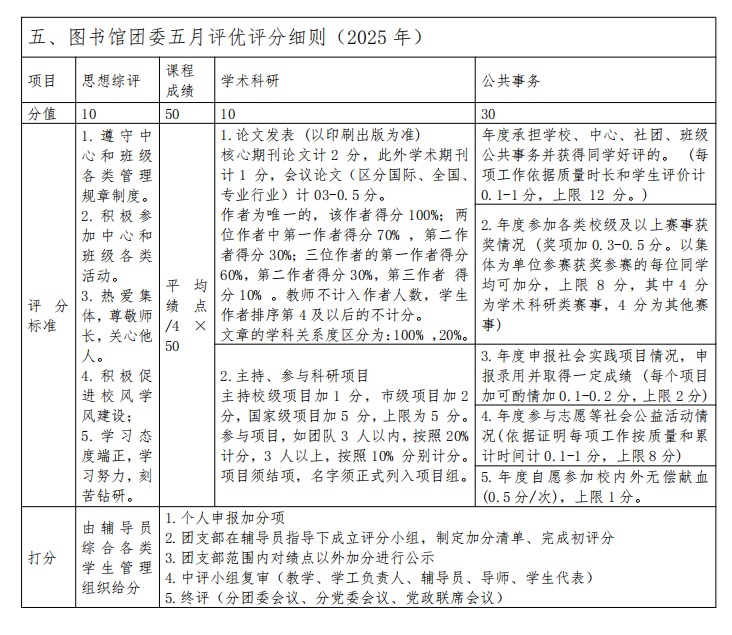 图书馆团委五月评优(2025年度优秀团员、优秀团员干部)评定细则公示